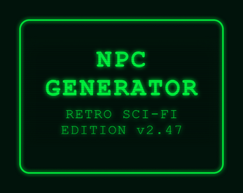 The Retro Sci-Fi NPC Generator is an online tool that lets you create realistic NPCs for your favorite retro sci-fi roleplaying games with a single click. It can be used with almost any game in this genre, such as Mothership, Death in Space, or Monolith. Just launch it, and your first non-player character is ready to go...