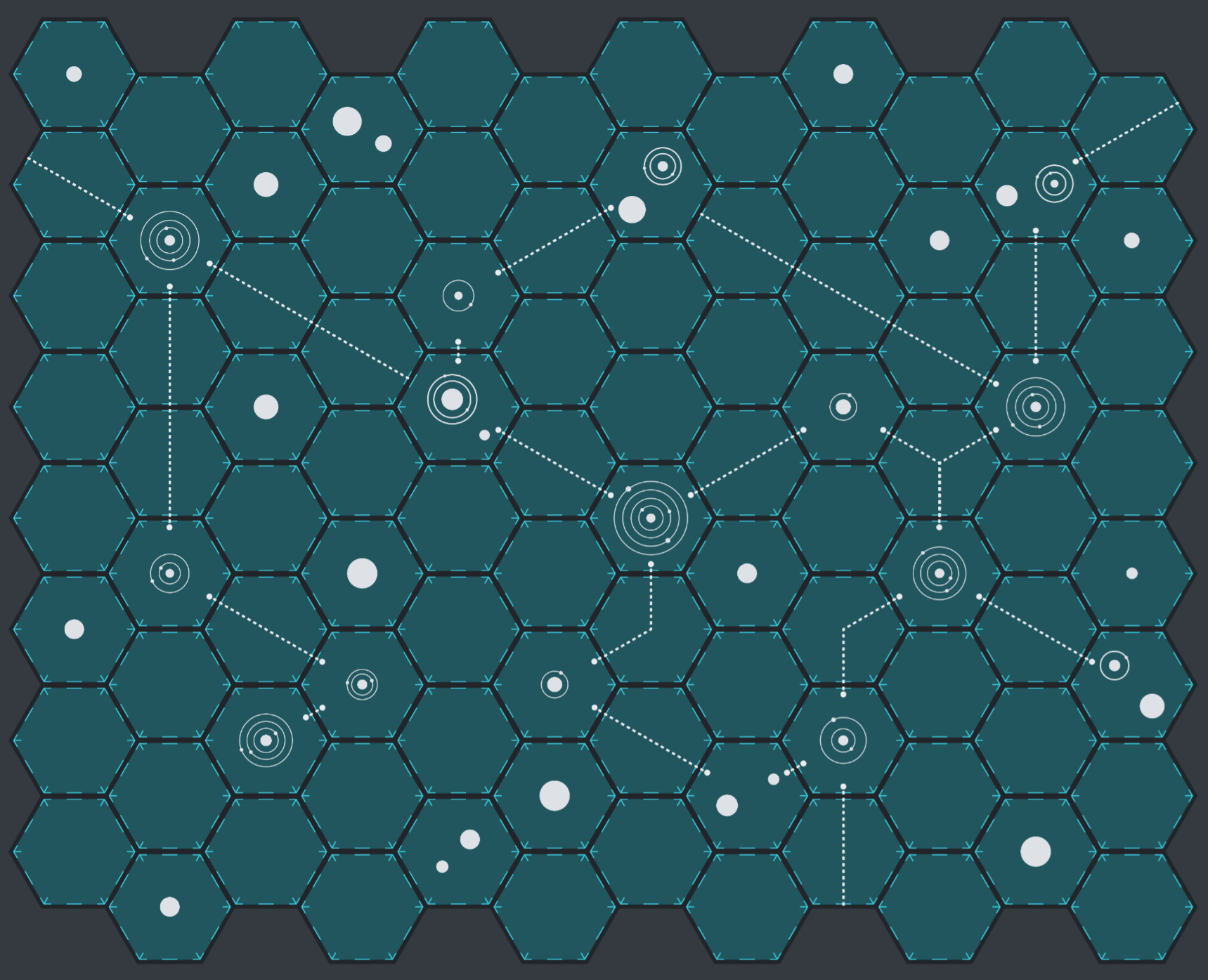 Sector Hexes is a sci-fi hex map tileset designed for creating detailed space maps. Using the included symbols and indicators, you can enrich your maps with layered information and highlight key features of each location.